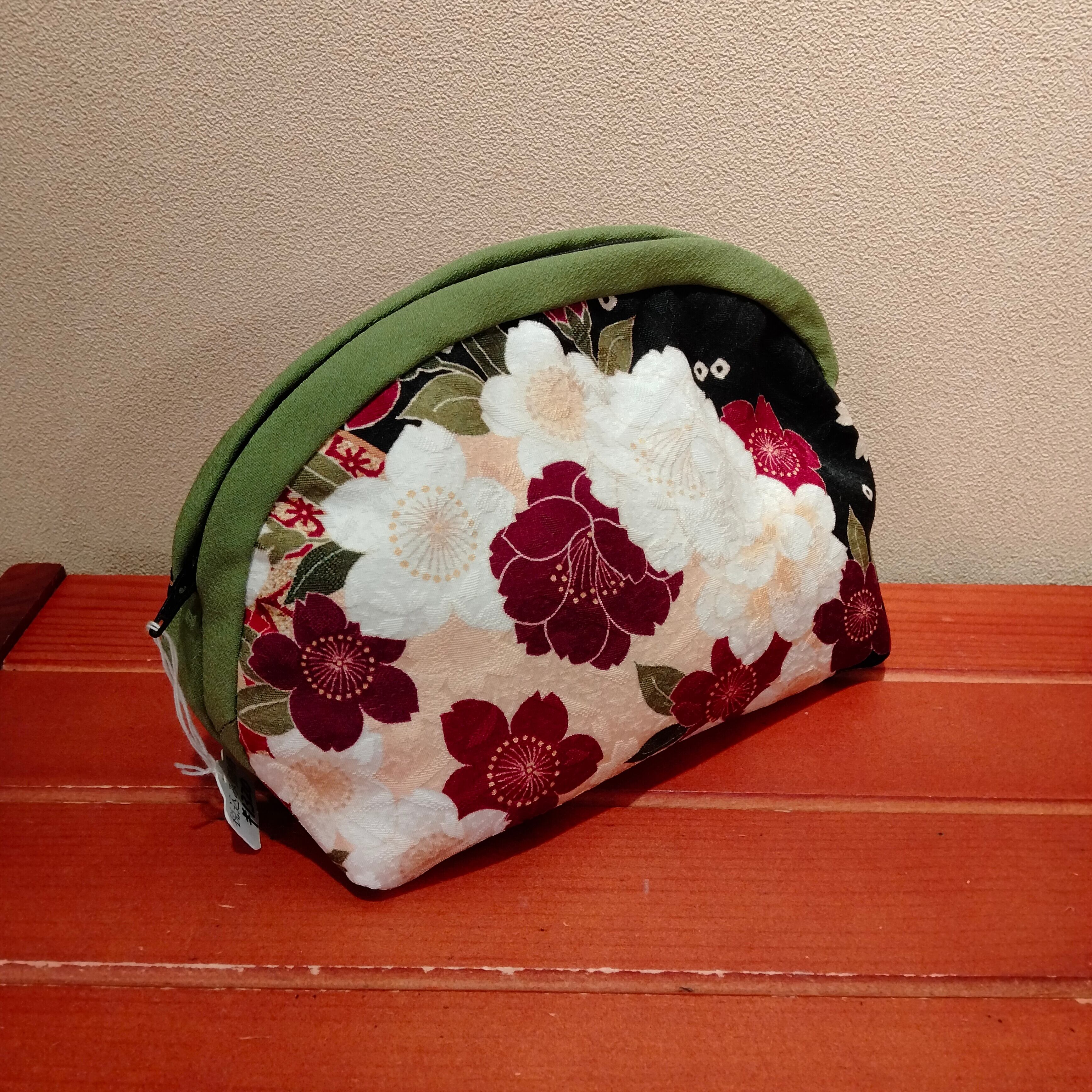 振袖の着物布で華やかなポーチです。